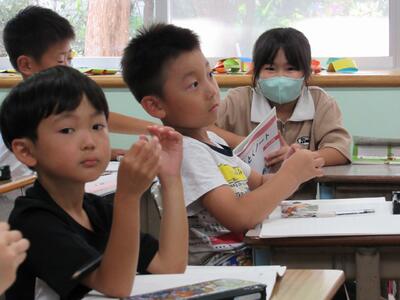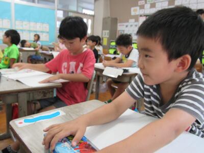 1年生は、文章を読んで、どのようなことが書かれているのか読み取ろうとしています。