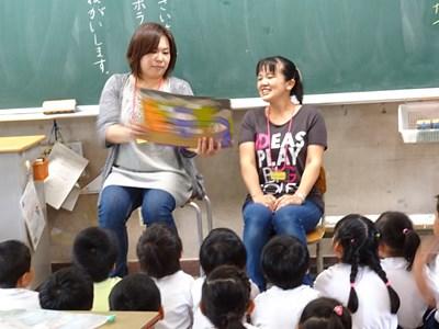 この時間、1,2年生は、学校応援団「yomuyomu」のみなさんによる、読み聞かせをしていただきました。yomuyomuのみなさん、ありがとうございました。