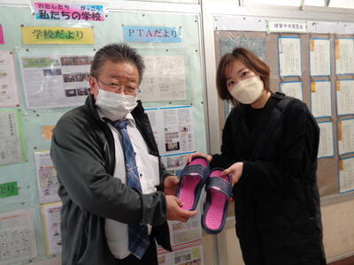 PTAの皆さんが、校内のトイレ掃除をしてくださいました。普段子供たちだけではできないところまで、きれいになりました。また、体育館用のスリッパも購入していただきました。ありがとうございました。