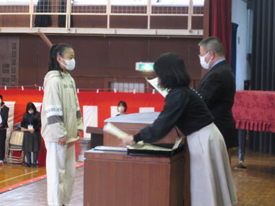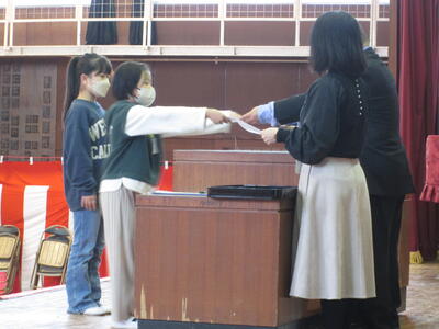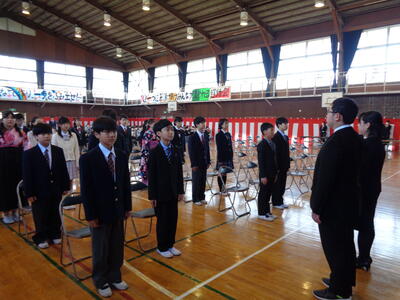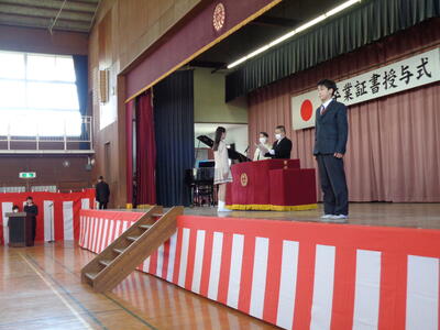 卒業生は、別れの言葉の中で、呼びかけと「旅立ちの日に」「さくら」の2曲を歌いました。堂々とした声と立派な態度に、卒業生の熱い想いが伝わってきました。