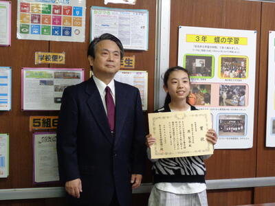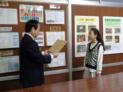 税務署長様が本校に来校され、児童に直接、賞状を渡してくださいました。
