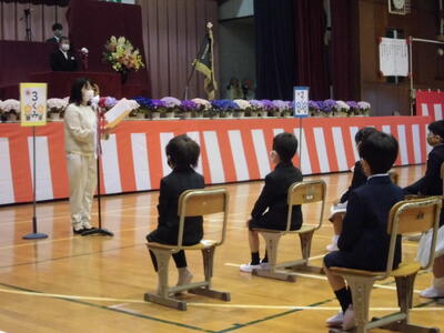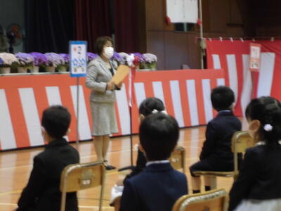わくわくとドキドキの入学式でしたが、新一年生の皆さんはとても立派な態度で話を聞いていました。校長先生からも、「楽しい学校にしていきましょう」とお話がありました。