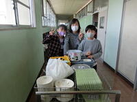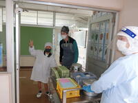 コロナ感染防止につとめながら、給食開始です。残りゼロでした。「ごちそうさまでした。」