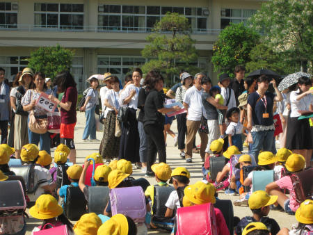 東海地震警戒宣言発令を想定した引き渡し訓練を校庭で行いました。お忙しい中参加していただいた保護者の皆様ありがとうございました。本日は、さわやかな5月の風が吹いてはいても、強い日差しが照りつけているため、早めに引き渡しを進行させました。ご協力ありがとうございました。