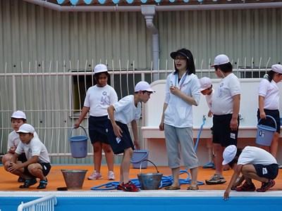 6月16日(火)のプール開きに向け、5、6年生が本日プール清掃を行っています。
