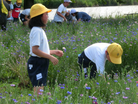 今日は古川公園の花畑に行き、おのおの花摘みを行いました。