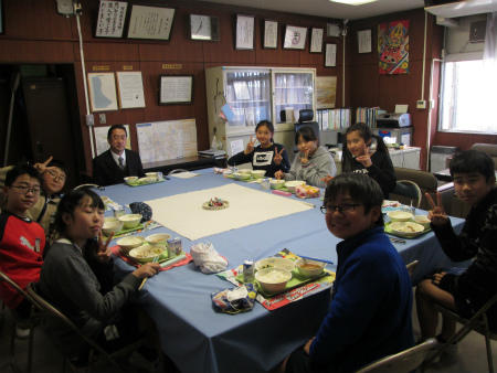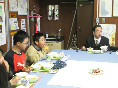 校長先生との会食も6年2組に入っています。明るい声が校長室から聞こえてきました。どんな会話を楽しんでいるのでしょう。楽しい思い出話に花が咲いたようです。
