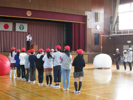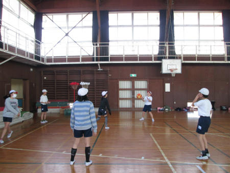 今朝は、少し寒い風が吹く中、元気アップタイムを行いました。準備運動の後、各クラスごとに、長縄を使い八の字跳びを行いました。少しでも速く、できるだけ引っかからないように工夫をして1分間跳び続けます。