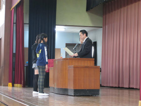 本日、平成28年度修了式を行いました。どの学年の子どもたちも、この日を待っていたかのように、にこやかな表情で式に参加しました。修了証書を受け取る態度も校長式辞を聞く態度もとても立派でした。この1年間で、子どもたちは大きく成長をとげたようです。保護者の皆様、地域の皆様のご協力のおかげです。ありがとうございました。