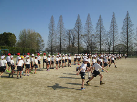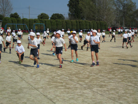 春風が心地よく吹く中、校庭では陸上練習を行っています。基本的な運動や体力作りを中心に、子どもたちは全力で取り組み、良い汗をかいています。練習を通して体を鍛え、病気に負けない強い体になって欲しいと思います。