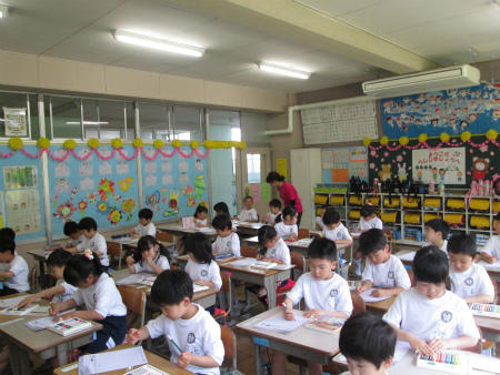 入学して7日が経過した1年生の子どもたち。こんなに立派に学習に取り組んでいます。また、学校行事である聴力検査も静かにきちんと順番を守り、うけることができました。