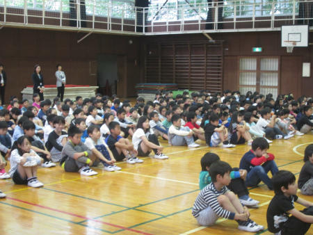 5月の講話集会を体育館で行いました。校長より、3つの大切な約束と心温まるお話がありました。続いて、5月の生活目標「時と場所にあったあいさつをします」についてのお話が生徒指導部よりありました。あいさつ名人を目指して頑張ってください。