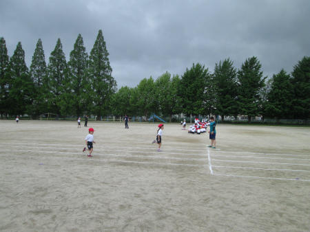 曇り空の中、1年生は元気よく体力テストを行いました。50メートル走、ボール投げを行いました。お友達や先生の声援を受け、一生懸命に取り組んでいました。よい記録が出るといいですね。