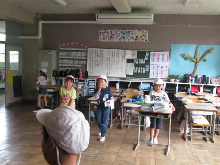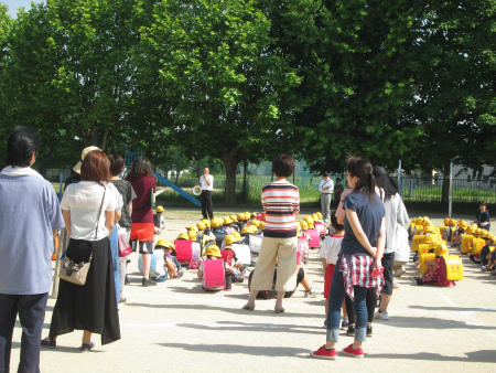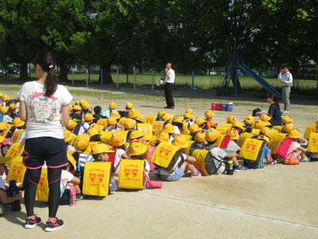 東海地震警戒宣言発令を想定した引き渡し訓練を校庭で行いました。お忙しい中参加していただいた保護者の皆様ありがとうございました。本日は、さわやかな5月の風が吹いてはいても、強い日差しが照りつけているため、早めに引き渡しを進行させました。ご協力ありがとうございました。