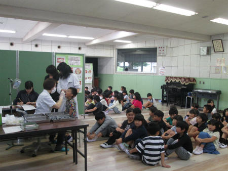 本日は、スタジオ室で歯科検診を行いました。静かに自分の順番を待つことができました。日頃の口内環境を健診します。もし、虫歯などが発見されましたら、早めの受診をお願いいたします。