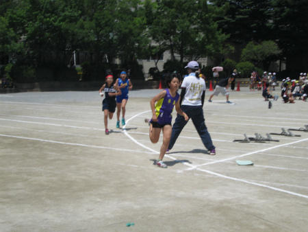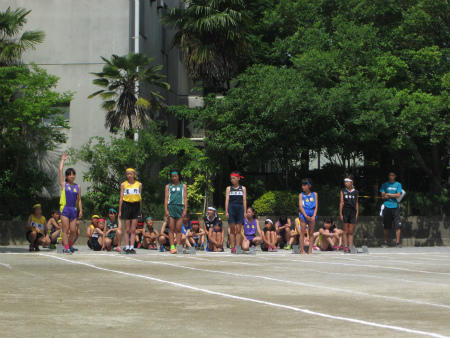 昨日の雨天で延期された陸上大会が幸松小学校で開催されました。牛島小学校の代表児童は円陣を組み、心を一つにして競技に取り組みます。どの種目の選手も力一杯頑張りました。牛島小学校の全校児童を代表して、6年生が応援してくれました。頑張った皆さん、ありがとうございました。