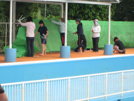 午後は職員の作業でプール清掃を完全なものにし、終了させます。事故防止のために、排水溝のチェックもします。さあ、プール学習が待ち遠しいですね。