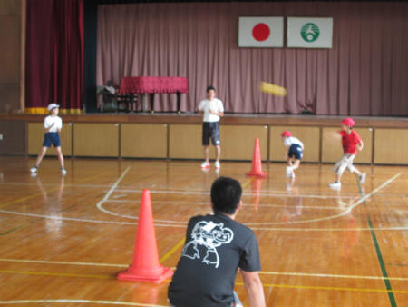 昼休みに、ドッジボール大会に向けた練習を体育館で行っています。ルールの再確認やポイント