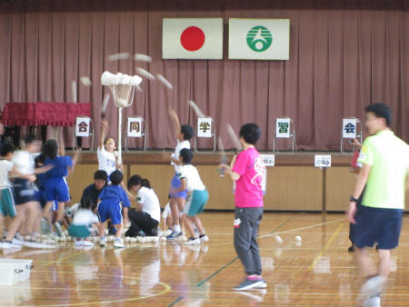 本日は体育館で5組・6組の体育の授業を参観しました。全員で一列になり、連続の馬跳びを行いました。続いて、2つのグループに分かれて、倒立系の技に挑戦しました。どの子も、いい汗をかき、運動に親しんでいました。