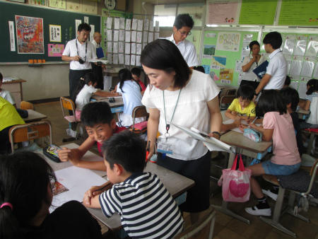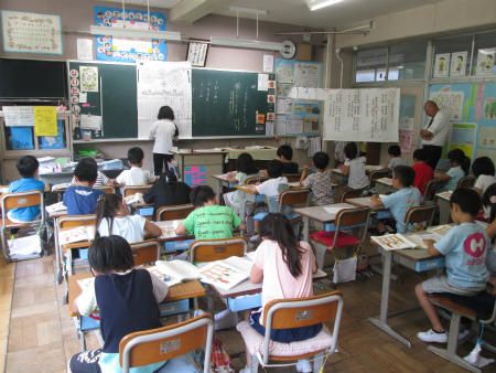 本日は、麻布教育研究所から指導者をお招きして、授業研究会を開催しました。5時間目に4年2組の子どもたちと国語の授業を通して行いました。夏の風景を表した俳句のよさを友だちと交流することをねらいとした学習です。多くの教師の見守る中で、子どもたちは、生き生きと活躍しました。