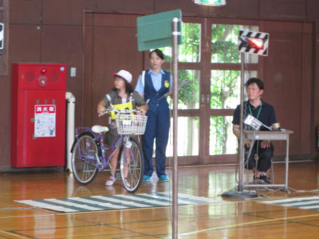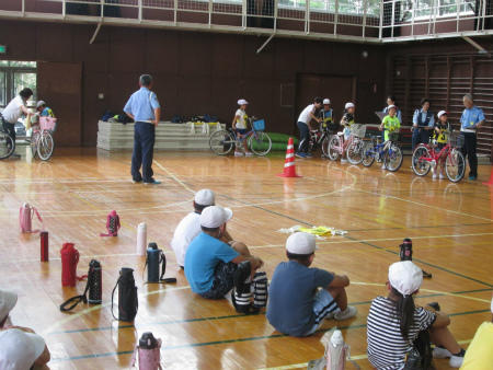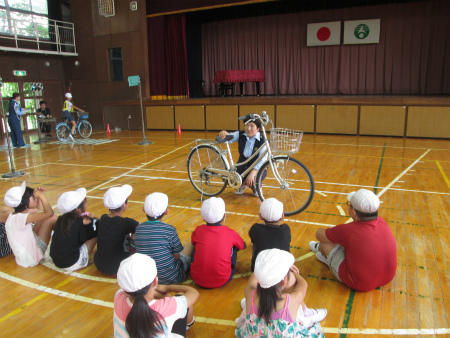 本日は、体育館で「自転車免許講習会」が開催されました。春日部警察署、春日部市役所、交通安全指導員、交通安全協会幸松支部の皆様をお招きして、4年生に自転車免許のための指導をしていただきました。本日のご指導をいかし、交通事故に遭わないよう、気をつけていきます。
