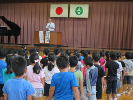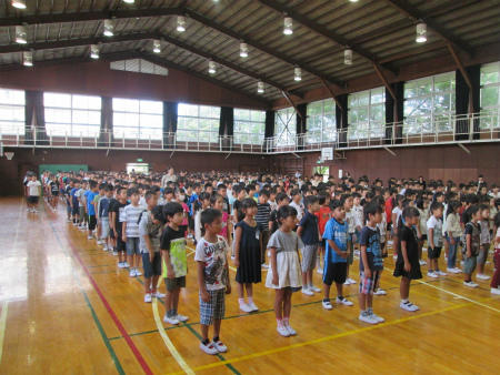 静かだった学校に、子どもたちの活気にあふれた声があちこちに聞こえ出しました。始業式では、校長より子どもたちに一生懸命な姿を見せて欲しいという思いを込めて「元気をください」というお話がありました。第2学期のスタートです。今学期もよろしくお願いいたします。