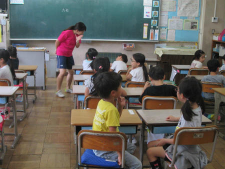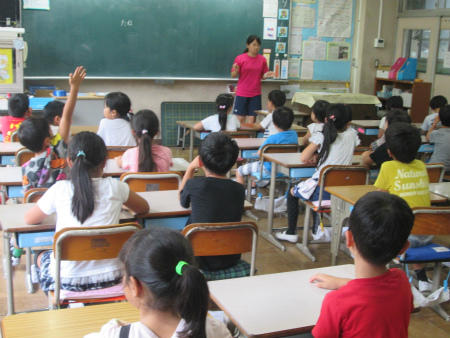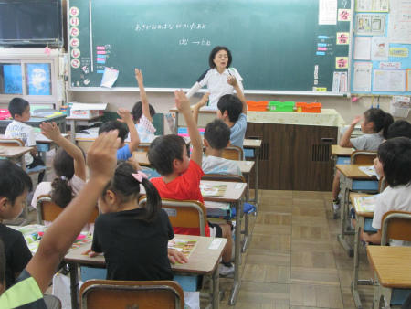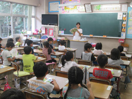 1年生の5時間目は、生活科の授業です。子どもたちは順調に成長し、落ち着いて学習に取り組んでいました。よい姿勢で、先生のお話に耳を傾け、学習を進めていました。