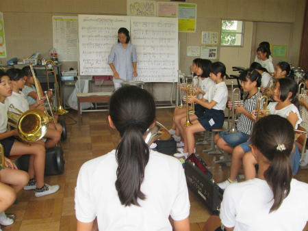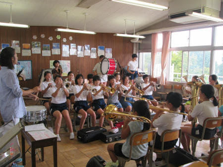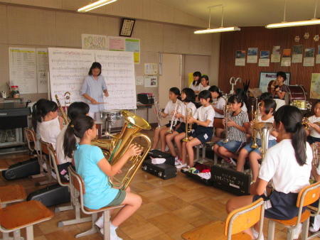 運動会に向けて、子どもたちは昼休みにも練習をしています。今回は、金管バンドクラブの練習風景です。練習は、夏季休業中にも行われました。パートごとの練習の後には、みんなで、心を一つにし、全員合奏を行います。本番までの限られた時間を有効に活用して思い出に残る運動会にしたいと考えています。