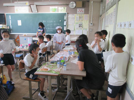 3年1組に「支援籍学習」のお友達がやって参りました。給食配膳からなかよく活動することが出来ました。みんなで元気よく「いただきます」をし、おいしい給食を食べました。昼休みもみんなと楽しく過ごすことが出来ました。