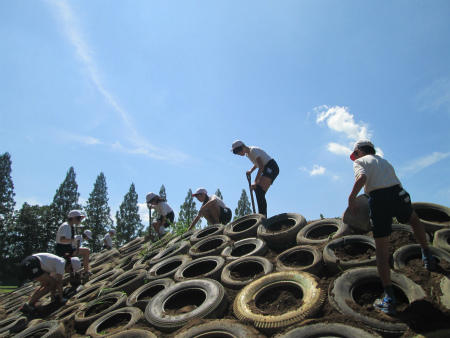 本日は、児童・教職員・地域保護者の皆様で改修してきた「なかよし山」の山開きを行いました。代表の皆様に挨拶をいただいたあと、記念のテープカットを行いました。その後、お祝いの花火を6発打ち上げ、1年生各クラスの代表による「登り初め」を行いました。1年生3人組の万歳は、とてもかわいらしかったです。なお、タイヤ部分の土はまだ、柔らかい場合がありますので、タイヤ部分には立ち入らないようにお願いします。