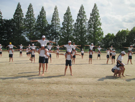 本日の5時間目、5・6年生は組み体操の練習を校庭で行いました。安全への注意の後、音楽に合わせて、1人技から順に練習を進めました。時折、秋の柔らかな日差しが降り注ぐ中、楽しくできたようです。