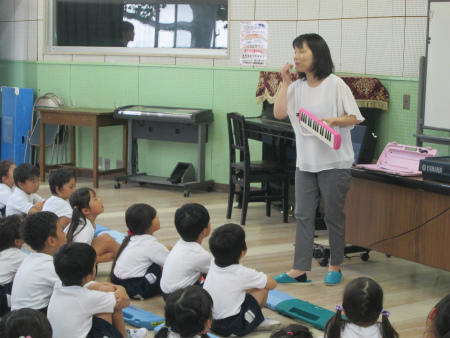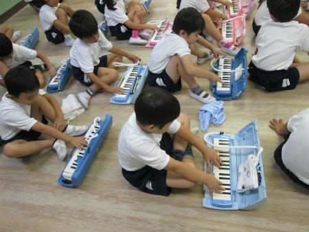 本日は、2時間目にスタジオ室で、「鍵盤ハーモニカ講習会」を行いました。1年生の子どもたちは、行儀よく説明を聞き、上手に演奏の基礎を体験しました。自動車のクラクションの音や救急車の警告音をまず習いました。6年生になる頃には、どんな演奏ができるか、楽しみです。