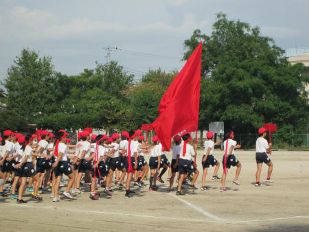 本日の5時間目、校庭では5・6年生の運動会練習が行われました。紅白に分かれて、「騎馬戦」の練習が開始されました。入退場、代表による気合いの入ったかけ声、合戦等の練習です。本番に向けて、みんな一生懸命に取り組みました。