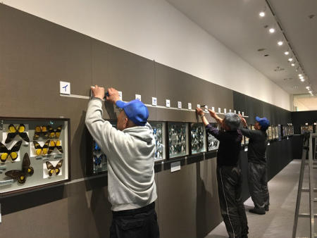 本日は、明日3月21日から4月16日まで匠大塚一階特別会場で開催される、『名和昆虫博物館のたからもの展』の設営作業をしました。