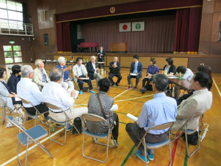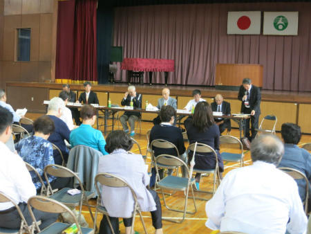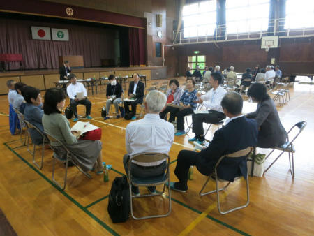 東中学区の小中学校の学校・PTA・自治会長・民生委員などの関係者が本校に集まり、2回目の幸松地区少年を守る会が本校で行われました。