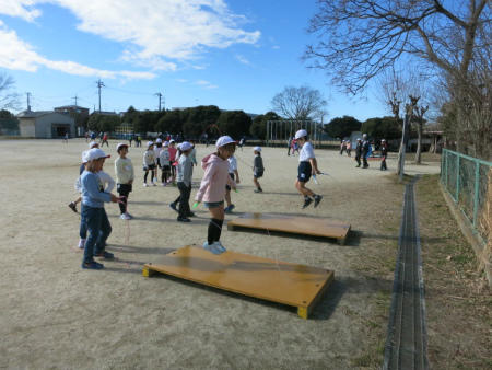 毎朝子供たちは校庭で元気に遊んでいます。子供たちは短縄の練習や、長縄集会に向けての8の字跳びに取り組んでいます。ジャンプ台は、用務員さんがたくさん作ってくれました。