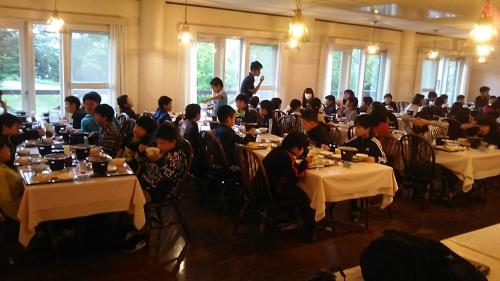 おはようございます。朝のお支度、シーツなどたためない子が続出(T_T)とりあえず、朝ごはんをしっかり食べて、ハイキングに備えましょう!