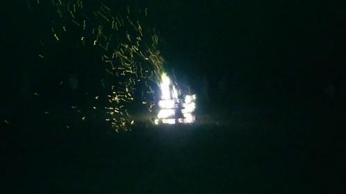 日が沈み、明々と燃える炎を囲んで歌と踊り、ゲームを楽しみます。浮き世から離れ、幻想的な空間で、こどもたちは新たに5年生の団結を誓うのでした。