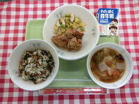 児童に人気の「鶏肉のから揚げ」ができるまでを紹介します。
