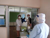 本日、4~6年生、5・6組の発育測定を行いました。学年ごとに体育館で距離をとりながら行いました。