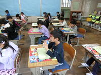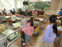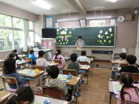 2年生国語「きょうのできごと」の学習です。単元の最初の時間は、みんなで学習の計画を立てました。「今日はどんなことをしたかな?」という先生の発問に、「ひなんくんれんがありました」「ドッジボールで遊んだよ」「あやとりをしました」など、自分の考えを進んで発表したり、書いたりしていました。この単元では「今日の出来事をくわしく日記に書いて、読んでもらう」という活動を行います。どんな日記になるか今から楽しみです。