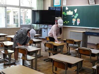 机やいすを運んだり、学校を清掃したりする6年生の姿から、
