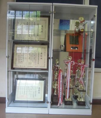 いただいた賞状やトロフィーを校長室前に展示しましたので、ご来校の際はご覧ください。