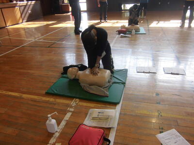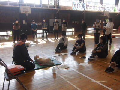 春日部市消防本部の方をお呼びして、教職員で心肺蘇生とAED使用についての実践的な研修を行いました。