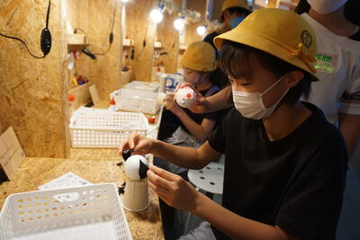 子供たちは、お兄さん、お姉さんに教えてもらってとてもうれしそうでした。