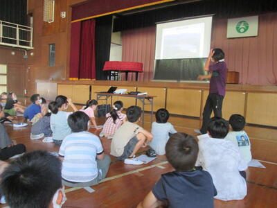 尾瀬のガイドさんに来ていただき、5年生が林間学校で行く尾瀬の自然や歴史について教えてもらいました。
