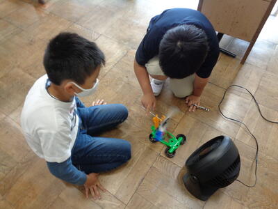 子供たちは、「台風の時に、風車がどれだけ速く回るか調べたい。」と風について興味津々でした。
