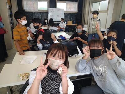 6組では、異学年の児童が学習しています。高学年の児童が低学年の児童を助けながら学んでいました。低学年の児童は、高学年の児童を慕っていて、助け合って学習している姿は、和やかで温かかったです。