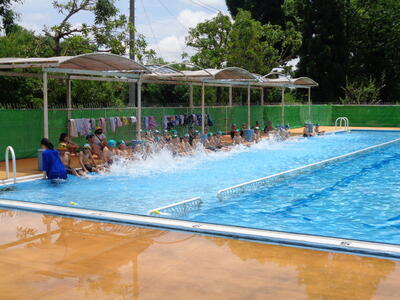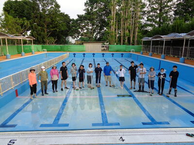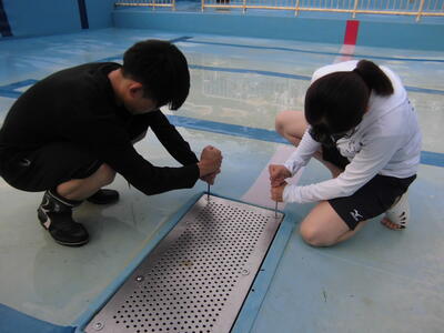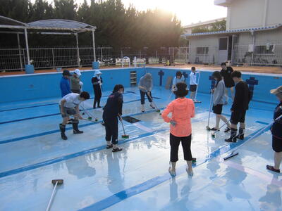 そして、来週から始まる水泳学習に向けて、職員で最終仕上げの作業を行いました。