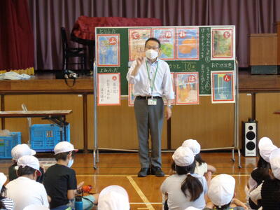 本日、春日部市教育委員会社会教育部の方に来校いただき、3年生に春日部郷土かるたについて教えていただきました。